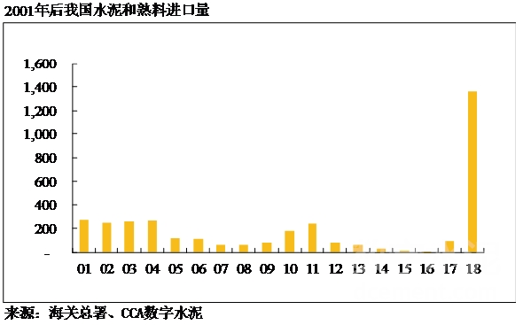 2017年以前,中國水泥年進(jìn)口量最多不到300萬噸,2016年更是達(dá)到了歷史低谷的6.5萬噸。但隨著我國沿海地區(qū)熟料價(jià)格高企,2018年以水泥熟料為主要產(chǎn)品的進(jìn)口量爆發(fā)性增長,僅當(dāng)年的進(jìn)口量就達(dá)到1363萬噸,比2005-2017年13年進(jìn)口量的總和還多。