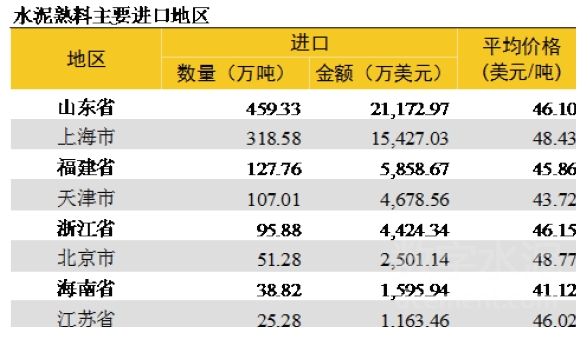從進(jìn)口熟料的區(qū)域來看,山東占總進(jìn)口量的36%,位于長三角區(qū)域的上海、浙江、江蘇合計(jì)占35%,華南福建、海南兩省合計(jì)占13%。
